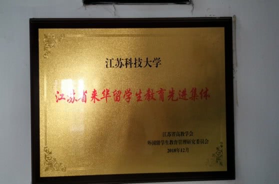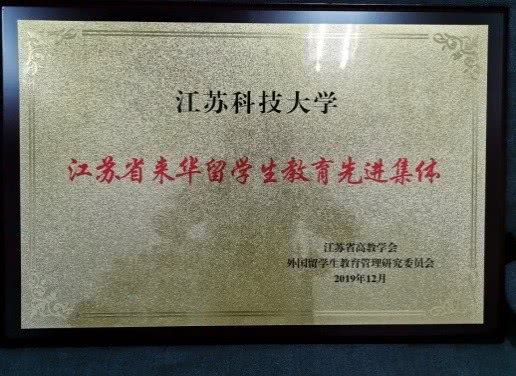 2016年,江蘇科技大學入選“留學江蘇目標學校”,2018、2019連續被評為江蘇省來華留學教育先進集體,4名留學生管理工作人員先后被評為留學生教育先進個人和優秀輔導員。