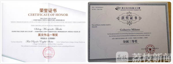 江蘇科技大學積極鼓勵留學生參加創(chuàng)新創(chuàng)業(yè)競賽、社會活動、校內(nèi)外文體活動和比賽,廣泛開展校外交流和展示,獲得一系列獎項與榮譽。留學生參加第五屆中國“互聯(lián)網(wǎng)+”大學生創(chuàng)新創(chuàng)業(yè)大賽國際賽道獲銅獎一項、全國大學生船舶能源與動力創(chuàng)新大賽獲優(yōu)秀獎一項、國家外專局跨文化交際大賽獲三等獎一項、江蘇省來華留學生征文大賽一等獎一項……