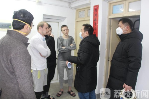 外事管理辦公室主任嚴涌嘉在人手短缺的情況下,主動配合留學生工作辦公室開展宿舍排查、防控知識宣傳、物資保障等工作,并與鎮江市外事辦公室保持聯系與溝通,時刻關注各駐華使領館發布的相關信息。