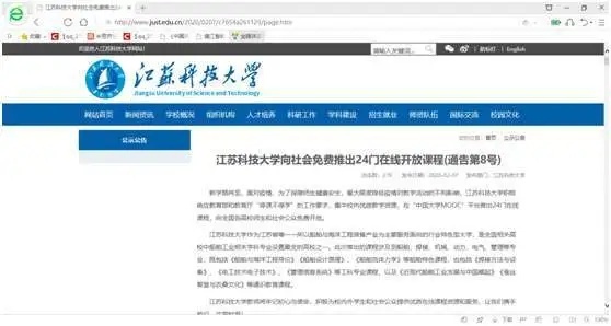 江蘇科技大學(xué)針對(duì)延遲開學(xué),制定了在線教學(xué)方案,利用中國大學(xué)MOOC、超星泛雅等優(yōu)質(zhì)課程平臺(tái)資源,開通了600余門線上課程,覆蓋公共必修課、學(xué)科基礎(chǔ)必修課和專業(yè)必修課。