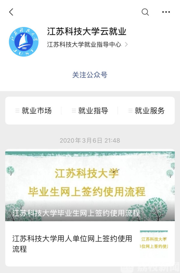 江蘇科技大學就業指導中心主任錢安其介紹,面對突發的新冠肺炎疫情,學校就業指導中心積極調整工作思路,改進工作方法,開通“新錦程職業教育發展平臺”和“北森”網絡求職課程學習,指導學生網上學習求職課程;利用“江蘇科技大學云就業”服務號與學校就業信息網,發布招聘信息,將宣講會線上化,實現就業信息精準推送;開展“不見面服務”,根據學生需求提供成績單、推薦表、協議書、檔案等材料,最大程度為畢業生提供便捷就業服務;組織學生創建“就業信息交流群”,開展線上咨詢,就網絡面試、網上簽約等流程提供指導,不斷優化簽約程序。