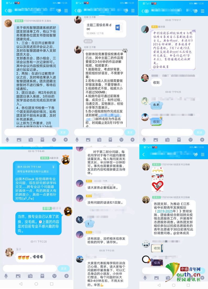 景榮春黨支部學(xué)生黨員對(duì)《江蘇科技大學(xué)2020年黨政工作要點(diǎn)》進(jìn)行自學(xué)后,“延期開學(xué)不能延遲我們進(jìn)取的腳步,為同學(xué)們打造一個(gè)豐富多彩且意義深遠(yuǎn)的假期”成為了他們的共識(shí)。經(jīng)濟(jì)社會(huì)不能長(zhǎng)期停擺,校院工作也不能因?yàn)檠悠陂_學(xué)而躑躅不前。為配合學(xué)校打贏這場(chǎng)疫情阻擊戰(zhàn),支部根據(jù)學(xué)生工作不同方面的工作量和工作需求,“對(duì)癥下藥”,科學(xué)合理分配力量,打出了線上服務(wù)同學(xué)的“組合拳”。