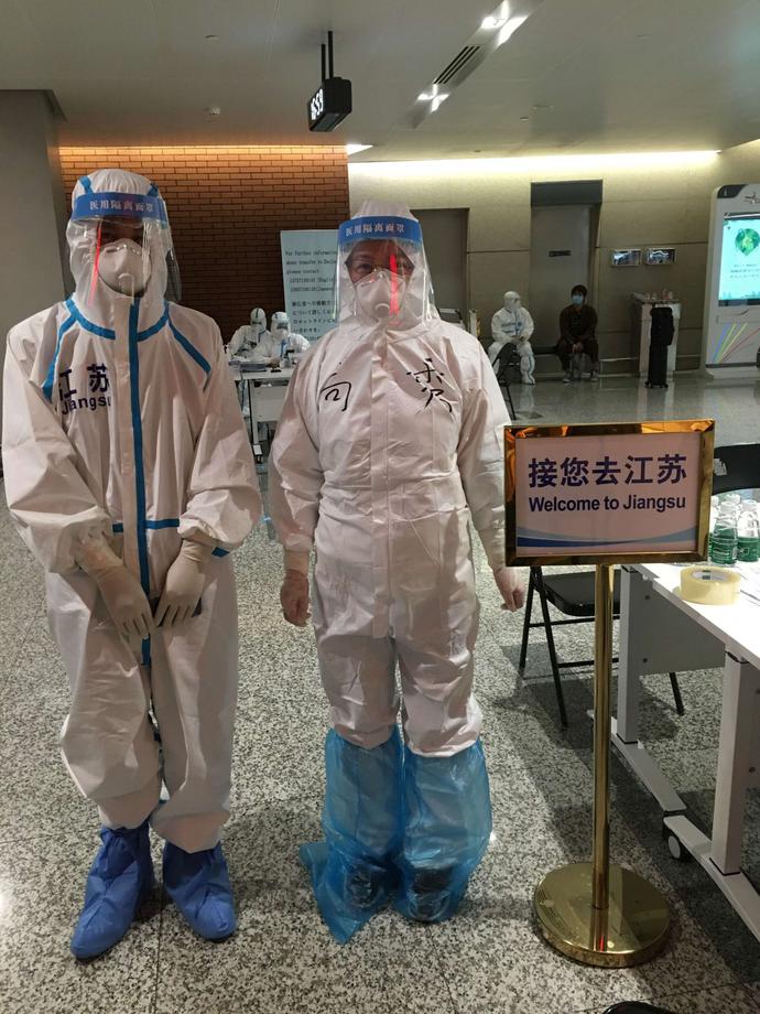 3月23日出征儀式上,高秀說自己“兩年來,時刻感到學校和學院家文化的溫暖,也未對學校和學院有貢獻,如今才有機會盡綿薄之力。在以色列學習時身處戰火中,害怕的時候是志愿者的安慰陪伴走過焦灼,今天終于能為別人送去安慰了。”任務來得如此迅速,踏上征程便直赴戰場,23日早上10點從鎮江出發,下午5點高秀已經在上海虹橋機場護送第一批入境人員前往昆山進行邊檢分流。