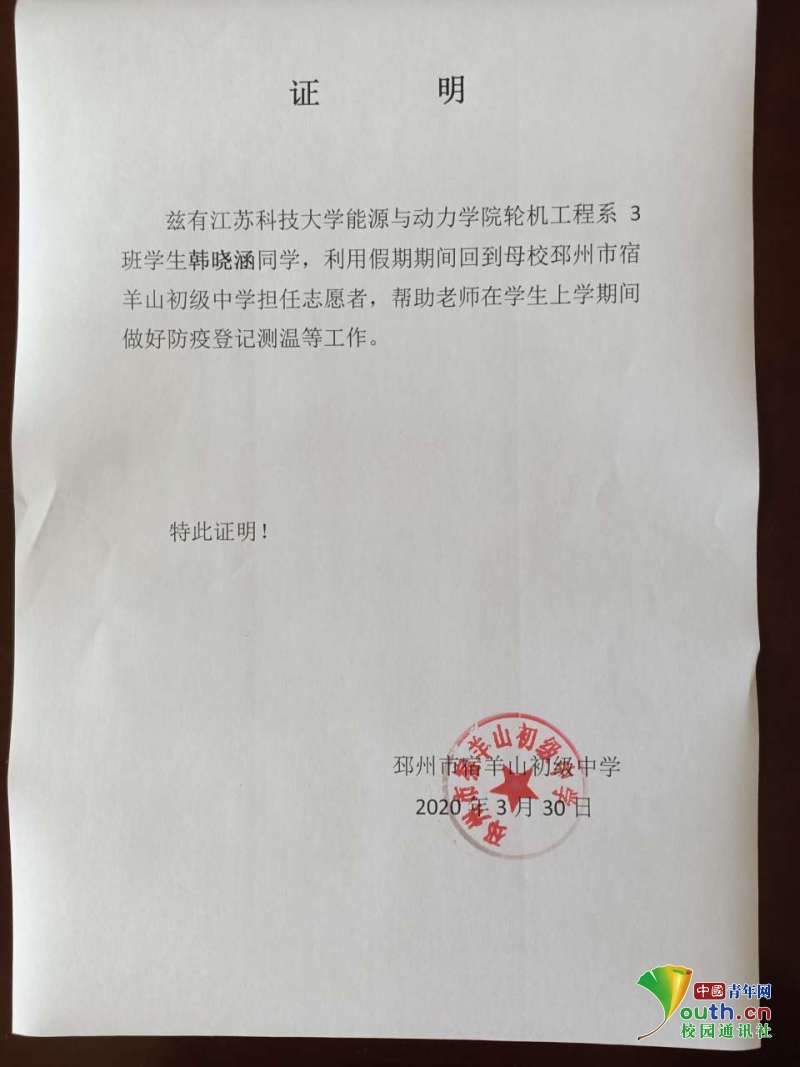 除此之外,曾慶瑋同學由于防疫工作積極,表現突出,被當地政府評為了“好市民”的榮譽稱號。王凌同學的抗疫散文鼓舞了人民群眾的戰役斗志,被海安市委評選為優秀公益作品。季文慧、韓曉涵、趙子航等十余名同學均受到了社區的表彰。