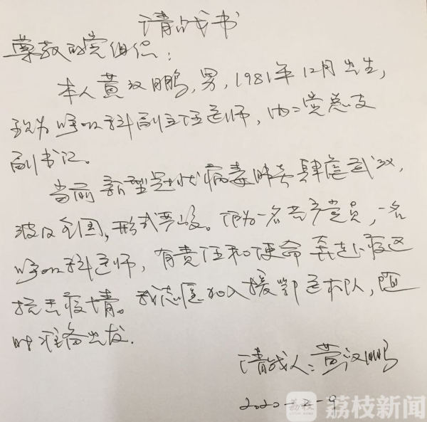 豈曰無衣,與子同袍。為了守護共同的家,江蘇數千名白衣戰士與自己的小家別離,奔赴湖北抗擊疫情最前線。江蘇大學附屬醫院呼吸科副主任醫師黃漢鵬,就是其中一位,他的故事要從一首詞說起。