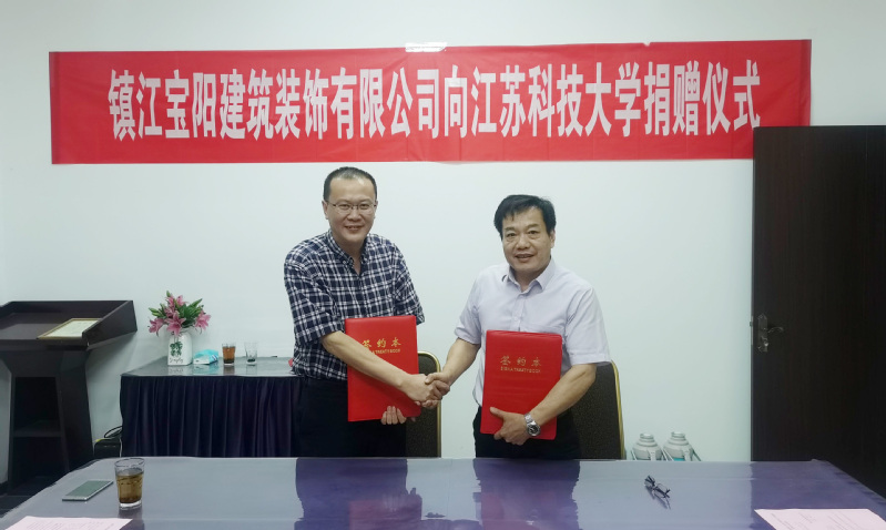 6月17日下午,鎮(zhèn)江寶陽建筑裝飾有限公司向江蘇科技大學(xué)捐贈儀式在鎮(zhèn)江寶陽建筑裝飾有限公司會議室舉行,校長周南平、副校長湯建,鎮(zhèn)江寶陽建筑裝飾有限公司董事長張五保、總經(jīng)理朱新林等出席儀式,學(xué)校對外合作處處長佘建國主持。
