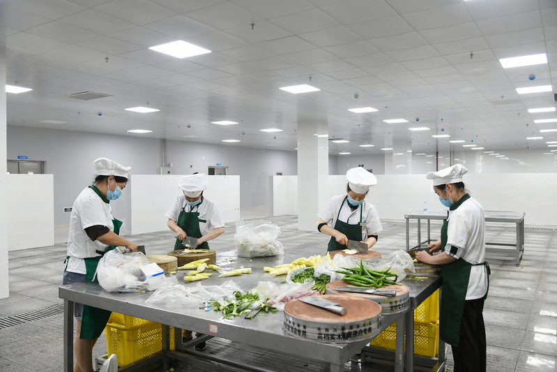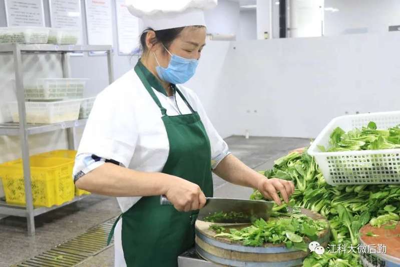 早上七點,校衛隊田進就和同事們來到了新校區崗位上,他們主要負責搬遷現場的道路疏通和現場車輛引導,時不時還幫搬運行李的同學搭把手。來到新校區后,他感覺新校區環境特別好,在這里工作,也讓人的心情特別好。后勤集團新校區西苑食堂負責素加工的劉順梅已經在加工素菜了,今天第一天到這邊上班,呼吸著新校區的空氣,工作在寬敞明亮的操作間,感覺很好。十點左右,素菜都已經加工得差不多了。大廚趙勇6月15日就來新校區上班了,為了正式開業,他和同事們已經準備了很長時間,頭天晚上就調試好新的爐灶,把開餐要用的東西都準備好,特別準備了十多個菜品,希望給前來就餐的師生留下好的印象。