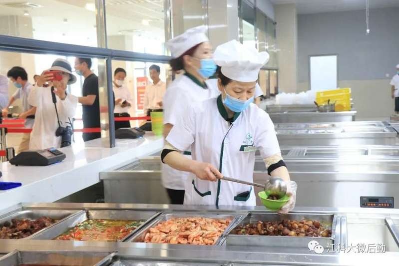 十里長山秀,百畝碧波柔。6月26日,江蘇科技大學新校區西苑食堂揭牌開業,校黨委書記葛世倫、黨委副書記許俊華、副校長姜朋明,鎮江市高校園區建設指揮部副總指揮馬士良,中船第九設計院副院長魯峰,中江國際江科大項目部經理朱偉平,校黨委常委周春燕、劉新波等共同見證揭牌開餐,校黨委副書記許俊華致辭,鎮江市高校園區建設指揮部副總指揮馬士良、中船第九設計研究院副院長魯峰分別講話,副校長姜朋明、中江國際江科大項目部經理朱偉平為西苑食堂揭牌。