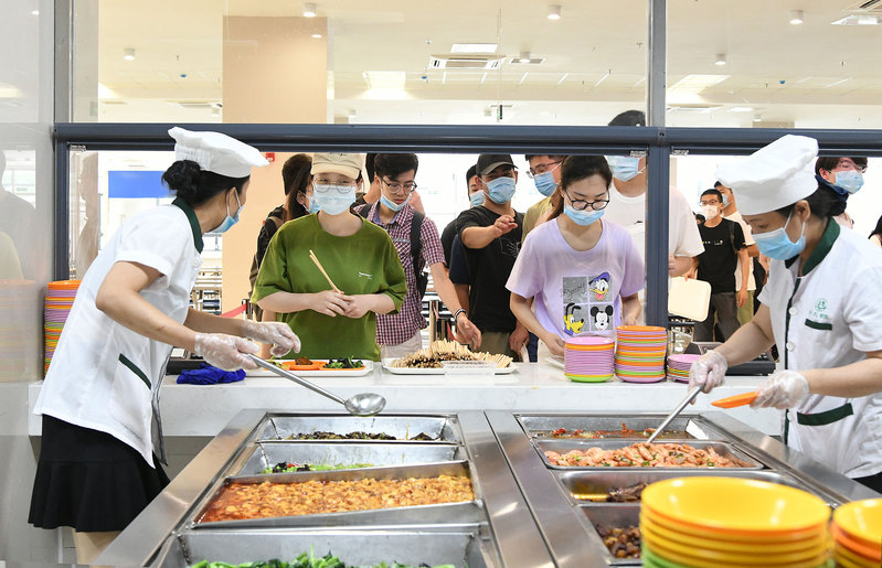在新校區西苑食堂簡短的揭牌儀式后,一樓大廳正式開業。土建學院2018級土木工程專業的研究生沈嬌看到寬敞明亮的餐廳,還有中央空調,很高興地告訴記者,這里的環境很好。電信學院2019級水聲工程專業的研究生李鵬飛吃了新校區的第一頓餐,感覺菜品豐盛,味道很好,個人體驗超贊。機械工程學院機械設計制造專業的關震也有同感,覺得新校區食堂味道好,選擇多,他還特別推薦食堂的蝦。后勤管理處處長、后勤集團總經理胡愛祥告訴記者,今天后大家對第一頓飯感覺味道不錯,比較滿意,作為后勤保障部門,要通過自己的努力在平時的保障服務過程中讓師生都能滿意。目前,新校區公寓里的家具、宿舍的空調、窗簾、直飲水、洗衣房等都已到位,除此以外,還有自助打印機、自助售貨機等都能滿足同學們的生活需求,希望同學住進來后,感受到新校區比較好的生活條件和環境,更好地學習,更好地生活。