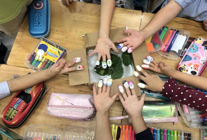 小朋友們展示自己制作的指尖上的“微表情”。 中國青年網通訊員 戚昱琦 攝
