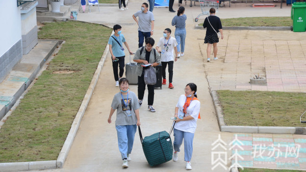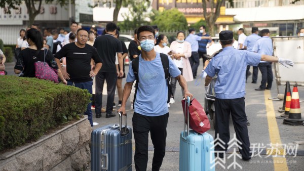 14日一早穿梭于火車站、客運站、高專臨時停車場、江蘇科技大學夢溪校區、長山校區的接送班車在新生完成測量體溫、核驗蘇康碼等防疫檢測后,載著新生抵達美麗校園。“同學,你好,請出示蘇康碼,配合測溫”,因疫情防控需要,新生報到時家長不能進入校園,這是今年新生報到程序的變化。在送完孩子進入校園后,很多家長遲遲不愿離開,還想再看孩子一眼,在夢溪路校門外,站滿了觀望自己孩子的家長們。很多家長用手機記錄著孩子進入校園的時刻。