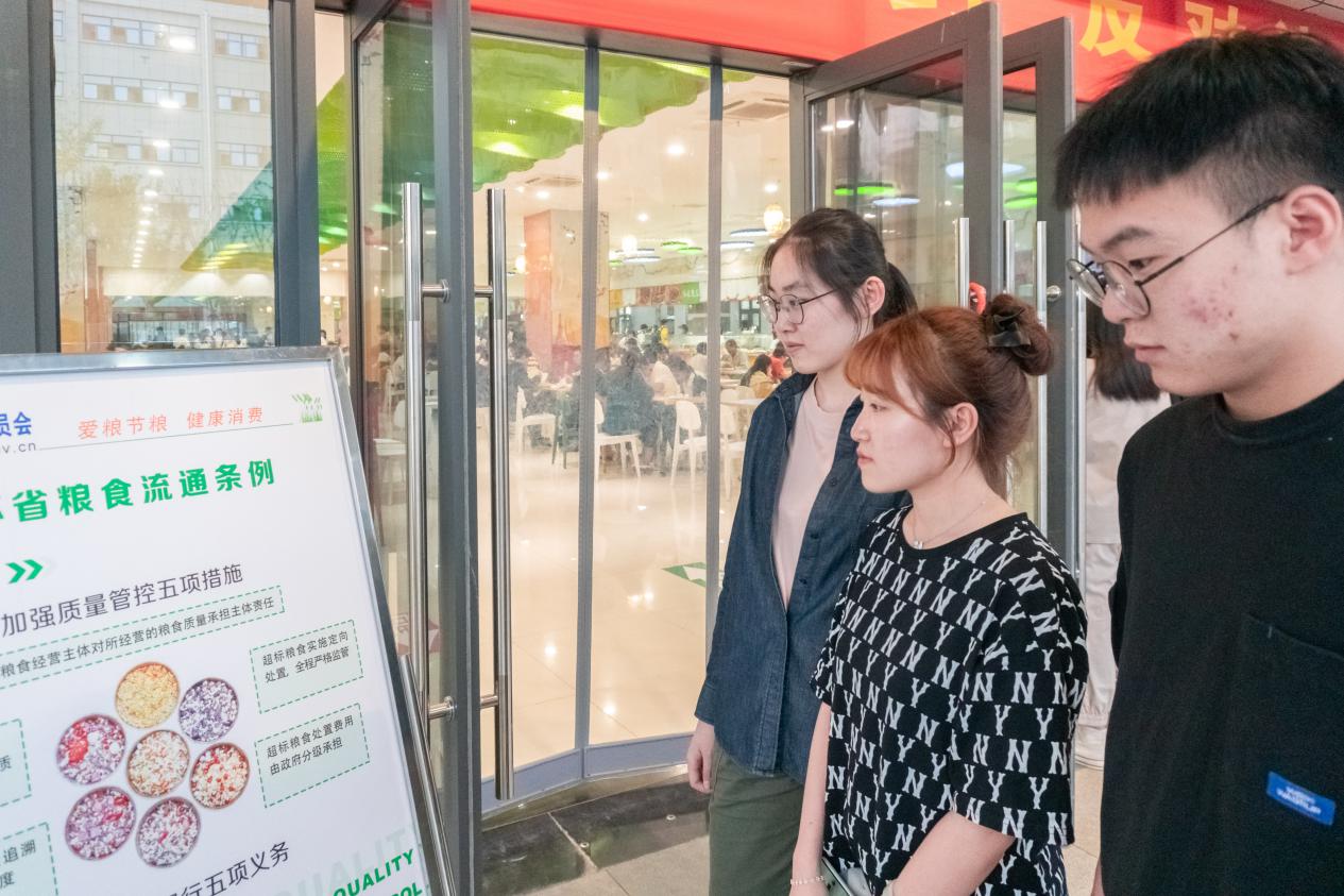 在江蘇科技大學長山校區食堂門口,一張張節糧愛糧與食品安全海報展板映入眼簾,00后志愿者們紛紛上陣宣傳,通過播放餐飲節約知識科普視頻、采訪光盤行動的學生與餐廳工作人員、發放并講解“堅決制止餐飲浪費”倡議書、新媒體平臺在線宣傳等線上線下融合的多樣形式,引領全校園形成浪費可恥、節約為榮的校園新“食”尚。
