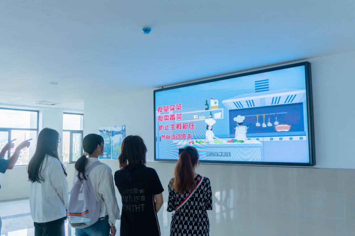 大屏幕前,循環展播著00后大學生自己制作的“誰知盤中餐粒粒皆辛苦”科普短片吸引一眾學生圍觀學習,各種餐飲節約小知識引導大家減少餐桌、餐盤剩飯菜現象;來往學校餐廳的學生們駐足觀看節糧愛糧海報,了解糧食流通條例、學習“堅決制止餐飲浪費”倡議書、糧油健康消費常識等內容。計算機學院的劉源同學表示:“剛剛吃完飯經過這里,看到這么多海報,很有意思,同時也學到了好多有用的食品安全和糧食節約小知識,我覺得厲行節約,反對浪費應該成為每個公民的自覺意識。”