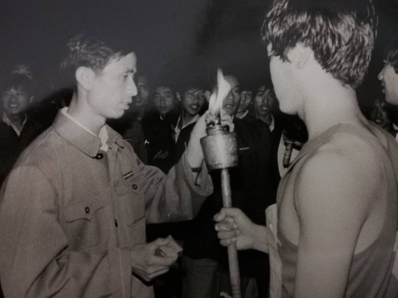 1984年5月4日在五四青年火炬接力賽前為運動會點燃火炬