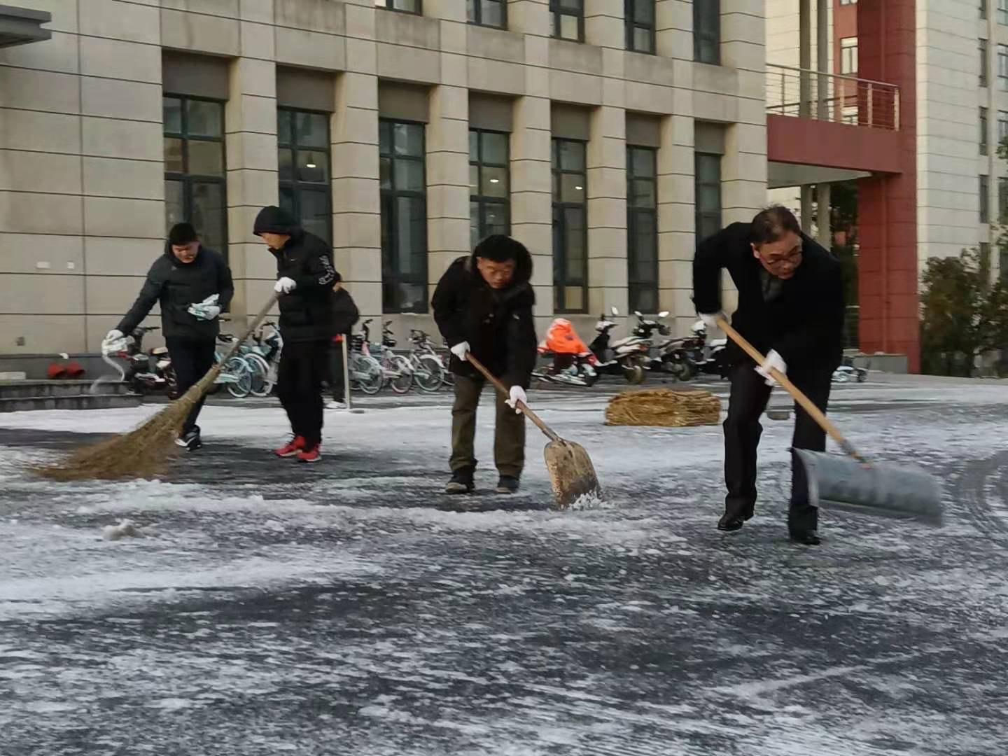 12月30日凌晨6:00,一陣陣掃帚劃過地面的聲音伴隨著鐵鏟摩擦聲打破了校園的寧靜。受強冷空氣影響,寒潮突襲鎮江,紛飛的大雪、刺骨的寒風相約而至,美麗的長山校區白雪皚皚、銀裝素裹。美麗的雪景令人神往,但卻給廣大師生出行帶來了很大的安全隱患,為了保障校園安全穩定運行,后勤集團工作人員大清早趕到學校清理積雪,為師生打通了安全上課、安心上班的交通線。