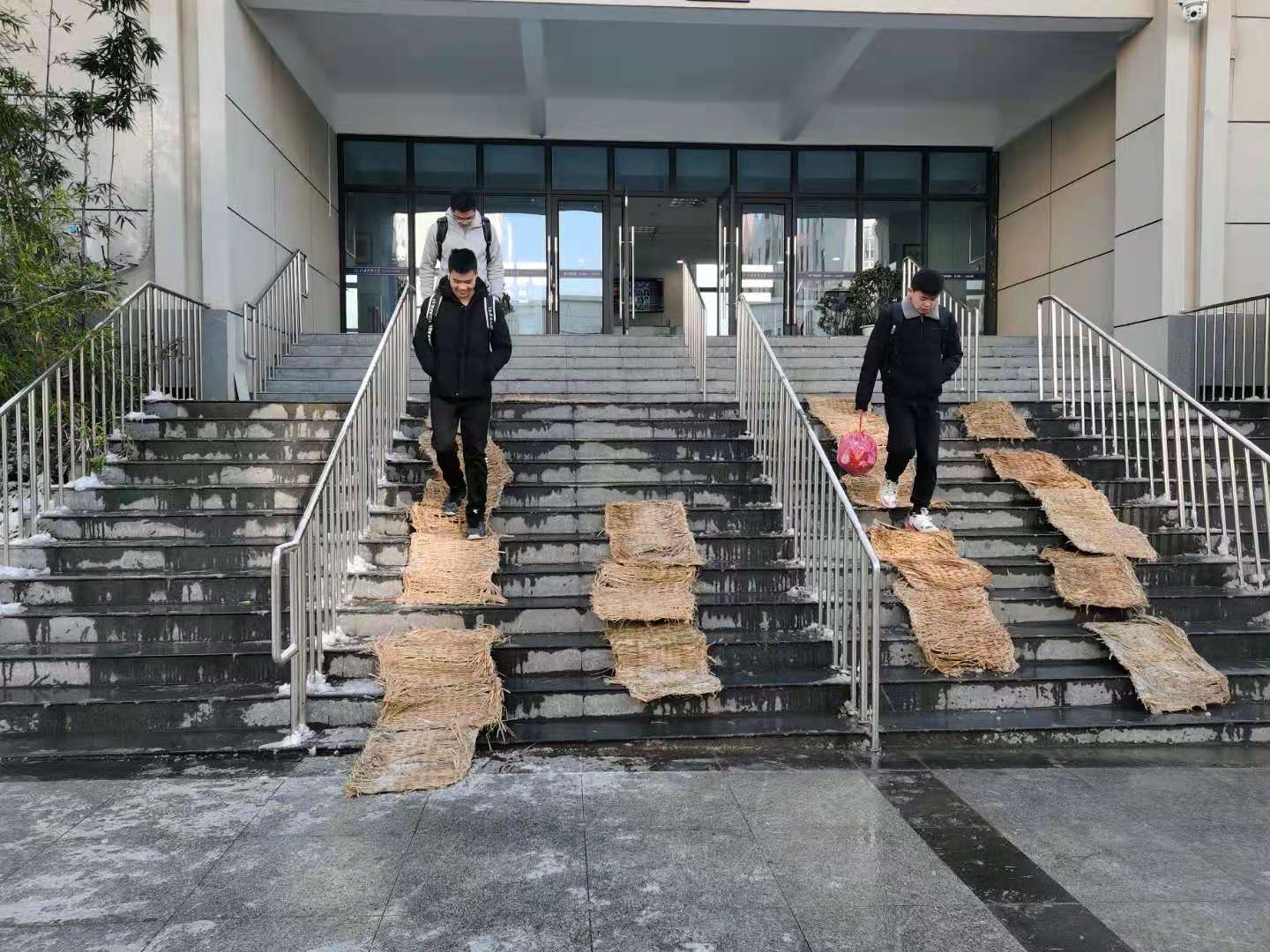 據悉,后勤集團此前連續兩次召開專題會議,布置雨雪冰凍災害性天氣防范、應對工作。通過微后勤平臺推送冰雪天氣溫馨提醒;在學生公寓、食堂、教學樓宇入口處鋪上草墊和防滑墊;制定積雪清理工作預案,調集鏟雪車;班車安裝防滑鏈,并增派應急車輛;食堂加強物資儲備,安排早餐人員夜間留守;水電維修部門開展拉網式排查,對裸露的水管、閥門采取保溫措施,并儲備維修配件,隨時搶修設備設施。集團領導、部門負責人實行24小時值守,確保后勤各項保障工作正常開展。