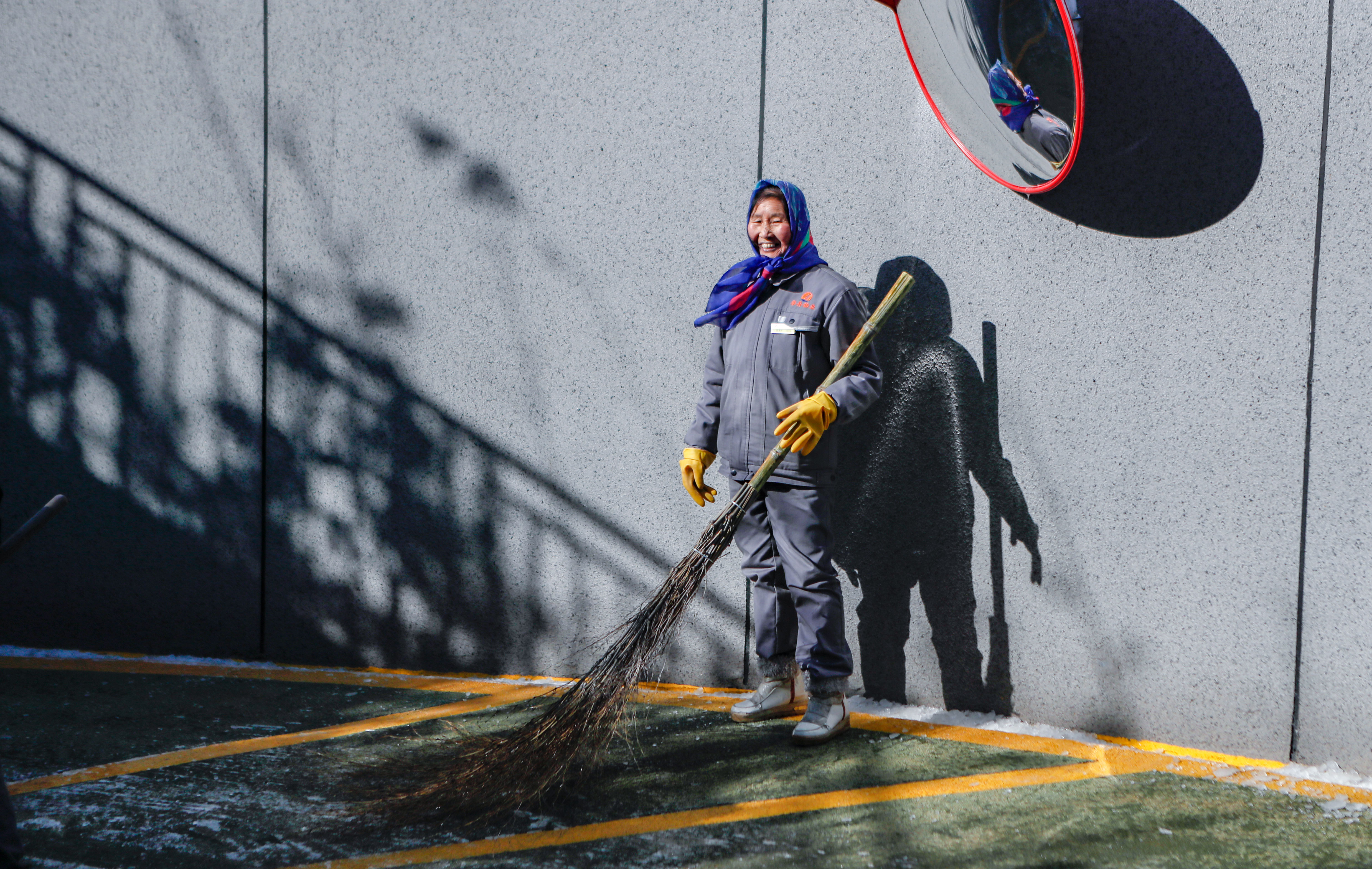 按照工作預案,30日凌晨,一組人員集中清理北大門周邊道路,另一組重點清理圖書館南面的浦江路,其他人各自為戰,負責打通教學樓宇、學生公寓和學生食堂門口的道路。由于天氣寒冷,積雪都已結冰,增加了清理的難度。大家不畏嚴寒、分工協作、相互配合,有的用鐵鍬鏟,有的用掃帚掃,有的撒融雪鹽,有的鋪防滑草墊,經過三個多小時奮戰,幾條主干道和樓宇前的通道全部打通,保證了師生出行安全。華舟物業的朱麗萍一邊賣力地鏟除船舶土建樓地下停車場入口處的積雪一邊說:“停車場入口朝北,路面上凍后異常堅硬,撒上工業鹽過了些時間,冰面在能夠逐漸被鏟除,但依然十分困難”。物業中心的徐才生介紹,長時間在零下的低溫環境工作,“剛開始冷得直發抖,但是大家都很投入地干活,越干越熱,現在身上都在冒汗,已經感覺不到寒冷。”