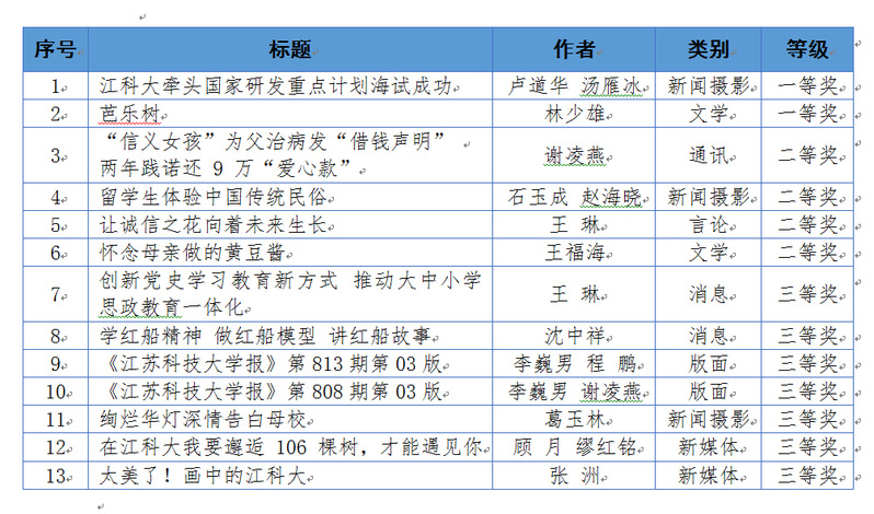 江蘇省高校校報2021年度優(yōu)秀作品評選結(jié)果近日揭曉,《江蘇科技大學(xué)報》選送的13件作品獲獎,其中一等獎2項、二等獎4項、三等獎7項,獲獎數(shù)量和獲獎等級均取得突破。
