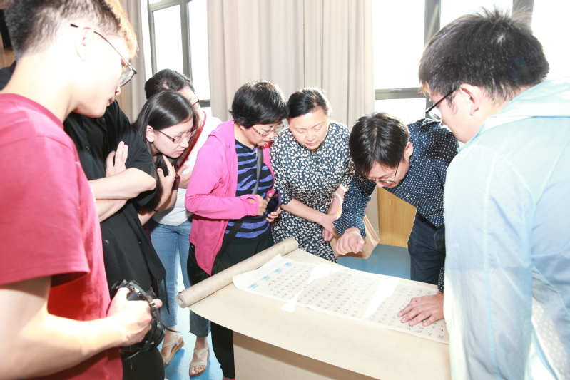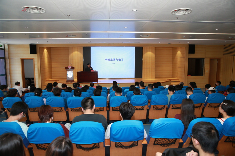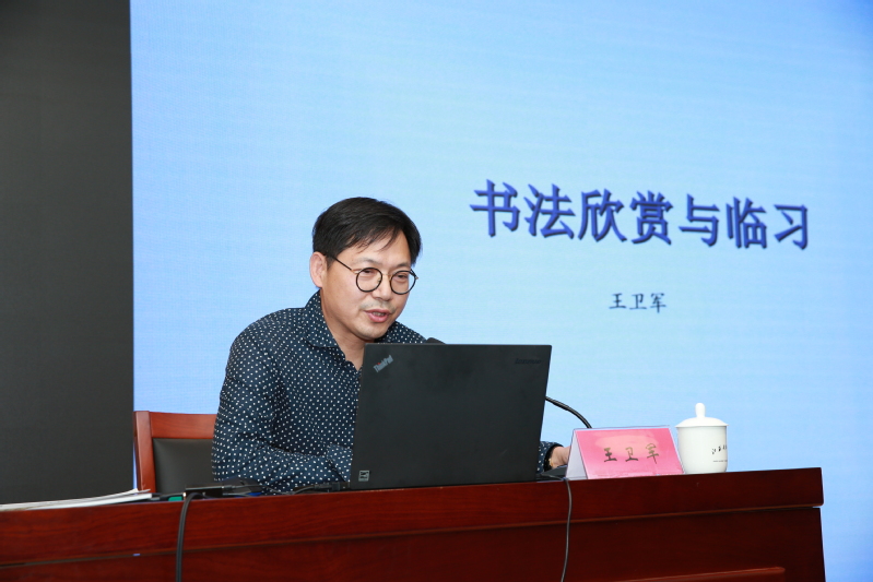 王衛軍以各種著名碑帖為例,引導在場師生學習如何品鑒和欣賞書法的美,體悟其中對生命、對自然、對社會、對時代的認知和人生的價值追求,并將這種審美能力進一步延伸到今后的工作和生活中。他表示,美不自美,因人而彰。我們要有能夠發現美的能力,用優秀的傳統文化去豐盈精神世界,慰藉在奮斗中偶感疲倦的靈魂,擁抱光明燦爛的人生。
