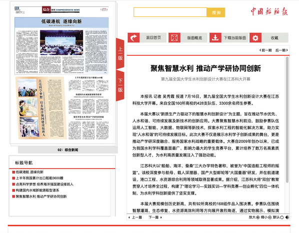 本報訊 記者 吳秀霞 報道 7月16日,第九屆全國大學生水利創新設計大賽在江蘇科技大學開幕。來自全國160所高校的428支隊伍、3300余名師生參賽。