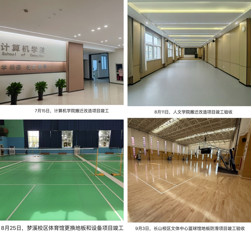 此次暑期改造項目涵蓋廣泛、意義深遠。夢溪校區計算機學院與人文學院搬遷改造,為學科發展搭建新平臺,開啟全新征程;馬克思主義學院實驗室改造,營造更優學術空間,助力思想交流與碰撞;夢溪校區體育館地板及設備更新、長山校區體育館地面防滑處理,全方位保障師生運動安全;教四教學樓出新及更換家具,打造更加舒適宜人的學習環境;張家港校區食堂外立面拆改解危項目和東苑食堂屋頂面板解圍項目,及時排除隱患,切實解決師生生活難題;江科大一村301外教公寓出新改造,提升外教居住品質,彰顯學校人文關懷;行政樓七樓紀委辦公用房改造,為管理部門提供更安全、健康、合規的工作空間。每一個項目都承載著學校對師生學習生活環境的重視與關懷,是學校發展的生動實踐。