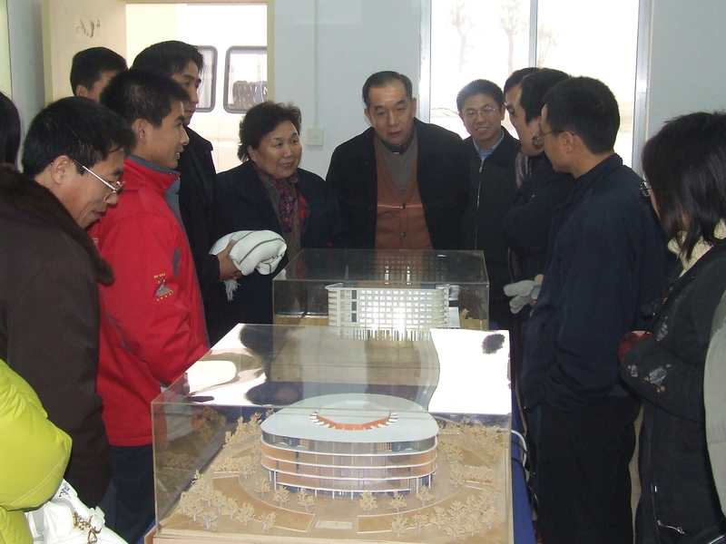 2006年,老領導觀看校區新校園建筑模型(中間右為祝山、左為冷靜)