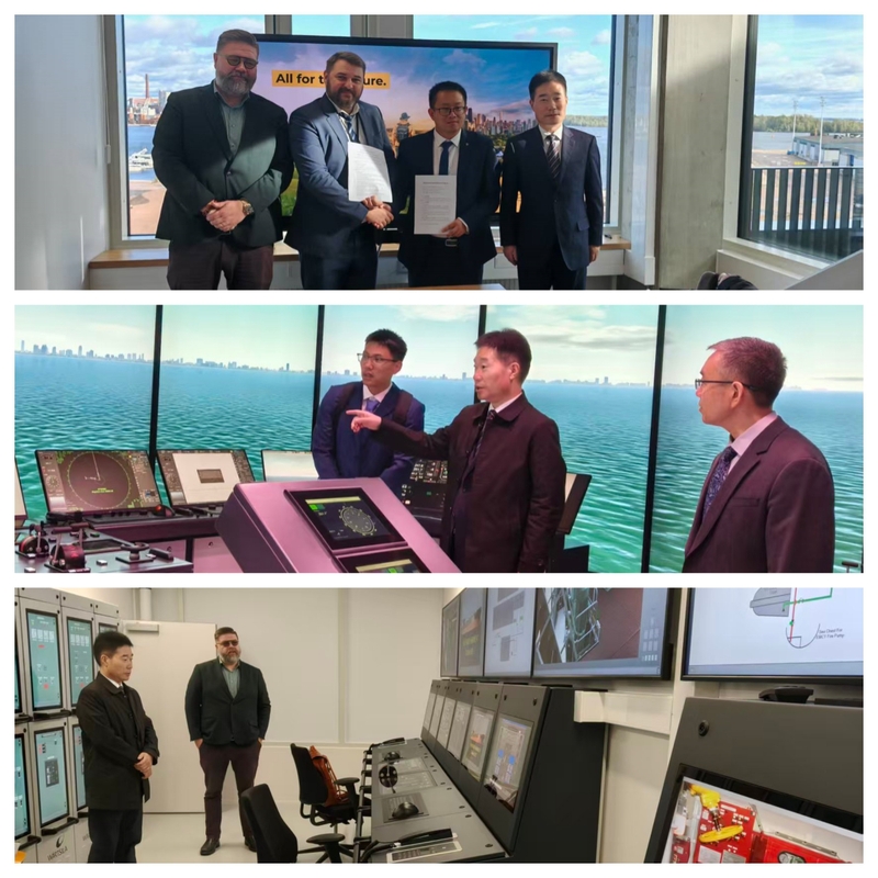 出訪團在芬蘭首站訪問了東南應用科技大學(South-Eastern Finland University of Applied Sciences),并與該校教學副校長Olli-Pekka Brunila,國際處副主任Greg開展了深入的交流會談。雙方圍繞開展聯合培養、雙學位項目、教師與學生短期互訪、科研項目合作等內容進行了討論。在雙方領導的共同見證下,兩校國際處簽署了合作備忘錄,這也標志著我校在芬蘭打開了國際合作新篇章。出訪團一行還參觀了該校Kotka校區的模擬航海倉、數字教室、多功能醫護實訓中心、實驗室等。
