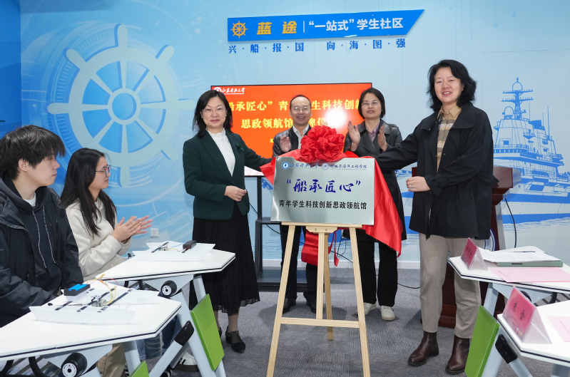 嵇春艷等領導共同為“‘船’承匠心”青年學生科技創新思政領航館揭牌,標志著學校這一融合思政教育與科創實踐的嶄新育人陣地的正式啟用。“‘船’承匠心”青年學生科技創新思政領航館由“深藍之光”船舶科技作品舫、“云帆智航”船舶科技創新工作舫、“藍途”一站式學生社區、“‘船’承領航”輔導員工作室四大板塊組成,集中展示了國家海洋強國重要戰略、江科大校友“以青春鑄船魂”的系列奮斗故事以及優秀學子科技創新作品;同時,思政館的建成,也是學校“一站式”學生社區建設的重要延伸,使得思政教育、學業指導、科創支持“融入日常、浸潤成長”,社區育人功能“精準落地”。