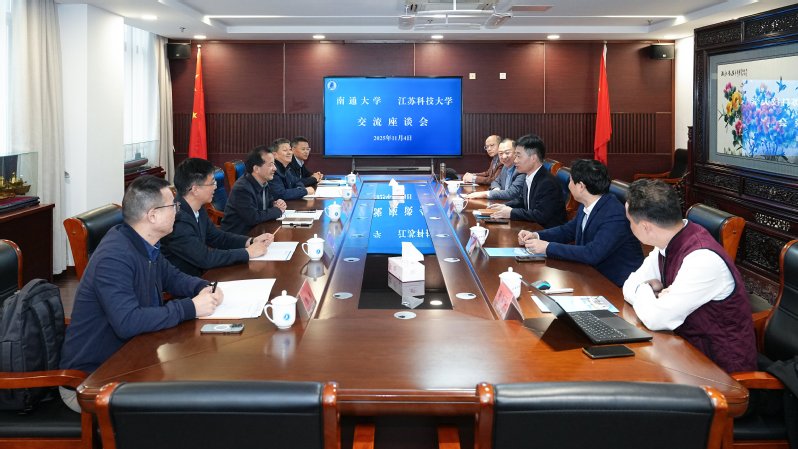 楊建新對王衛東一行的到來表示熱烈歡迎,并簡要介紹了學校的發展歷程、辦學特色、人才培養以及科技創新與產業創新融合發展等情況。他指出,近年來,學校立足“船舶、海洋、蠶?!比筇厣?,始終堅持辦學特色和國防底色,主動融入地方,把握教育支撐、社會發展、人才培養的基本規律,積極為中國船舶行業發展和海洋強國戰略作貢獻,在國家重點實驗室建設、產教融合、黨建人才培養等方面都取得明顯成效,推動學校教育事業高質量發展。他表示,希望南通大學與江蘇科技大學攜手共進、共同發展,積極爭創“雙一流”建設高校。