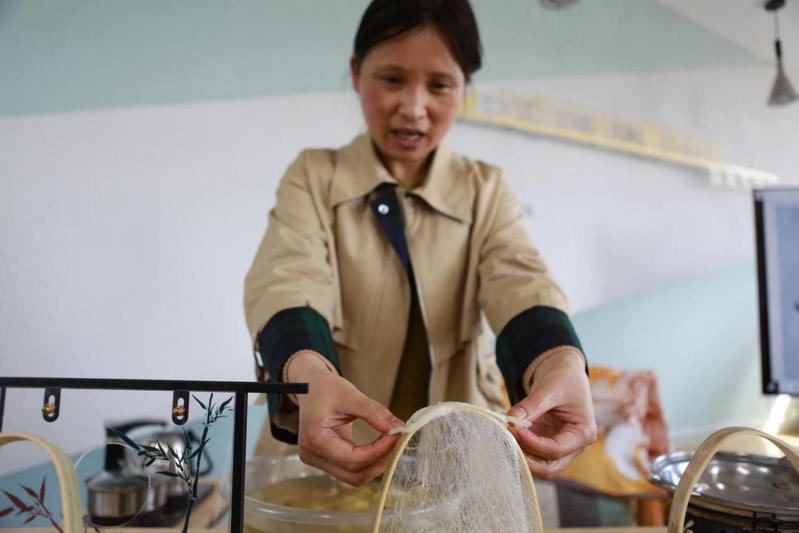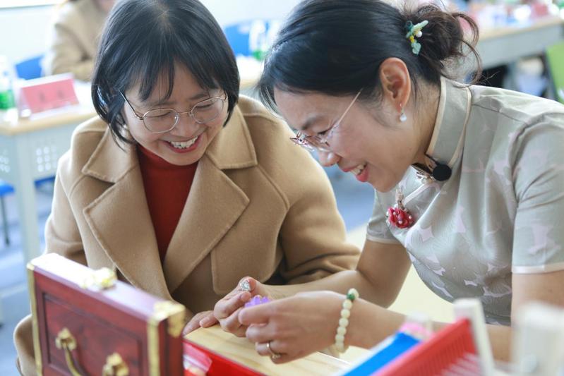 “聽蠶桑故事,體驗手作絲綿”“繅彩色蠶繭,制作胸針團扇”“穿經典旗袍,打卡最美身影”“品桑葉茶湯,共敘美好情誼”……活動現場對一體式服務站空間進行了靈活布置,分區域提供傳統文化和生活美學現場體驗。來自生物技術學院的副教授聞燕博士向現場與會者充分展示了學校“船舶、蠶桑、海洋”三大辦學特色之一的“蠶桑”傳統文化魅力。剝繭、煮繭、繅絲、開綿、編制,親手將一根根晶瑩剔透的蠶絲通過傳統工藝手法變成精美的文創作品,現場參與者在時光中拾取非遺文化溫暖的光芒,感受到了守護傳統文化的意義和價值,進一步樹立了文化自信,豐富了未來建設女職工康乃馨服務站的視角,深感收獲滿滿,不虛此行。