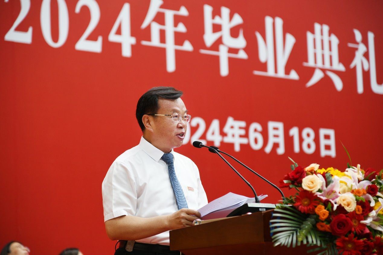 周南平深情寄語畢業生:“畢業是一個節點,標志著純真校園生活的結束和嚴肅社會生涯的開始。有人或許說,將船留在港灣最為安全,但那絕不是我們造船的目的,我們就是要去揚帆遠航,去感受海浪,去站在強國建設、民族復興新征程的最前列!”