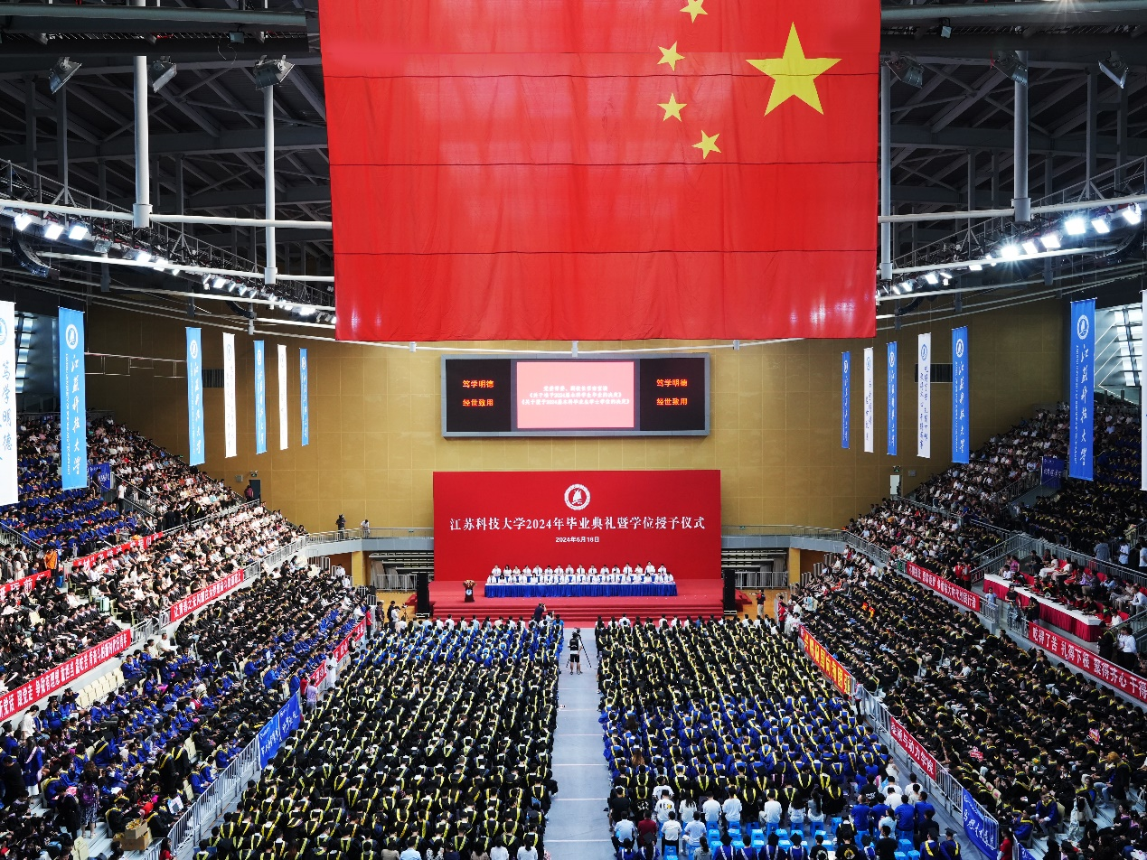 鳳凰花開,驪歌縈耳。6月18日上午,江蘇科技大學2024年畢業典禮暨學位授予儀式閃亮啟幕。4558位本科同學、1562位博碩士研究生同學和151位來自33個國家的留學生接受導師團撥穗正冠,共上大學“最后一課”,懷揣殷殷囑托和深深祝福奔赴山海,續寫人生新篇章。