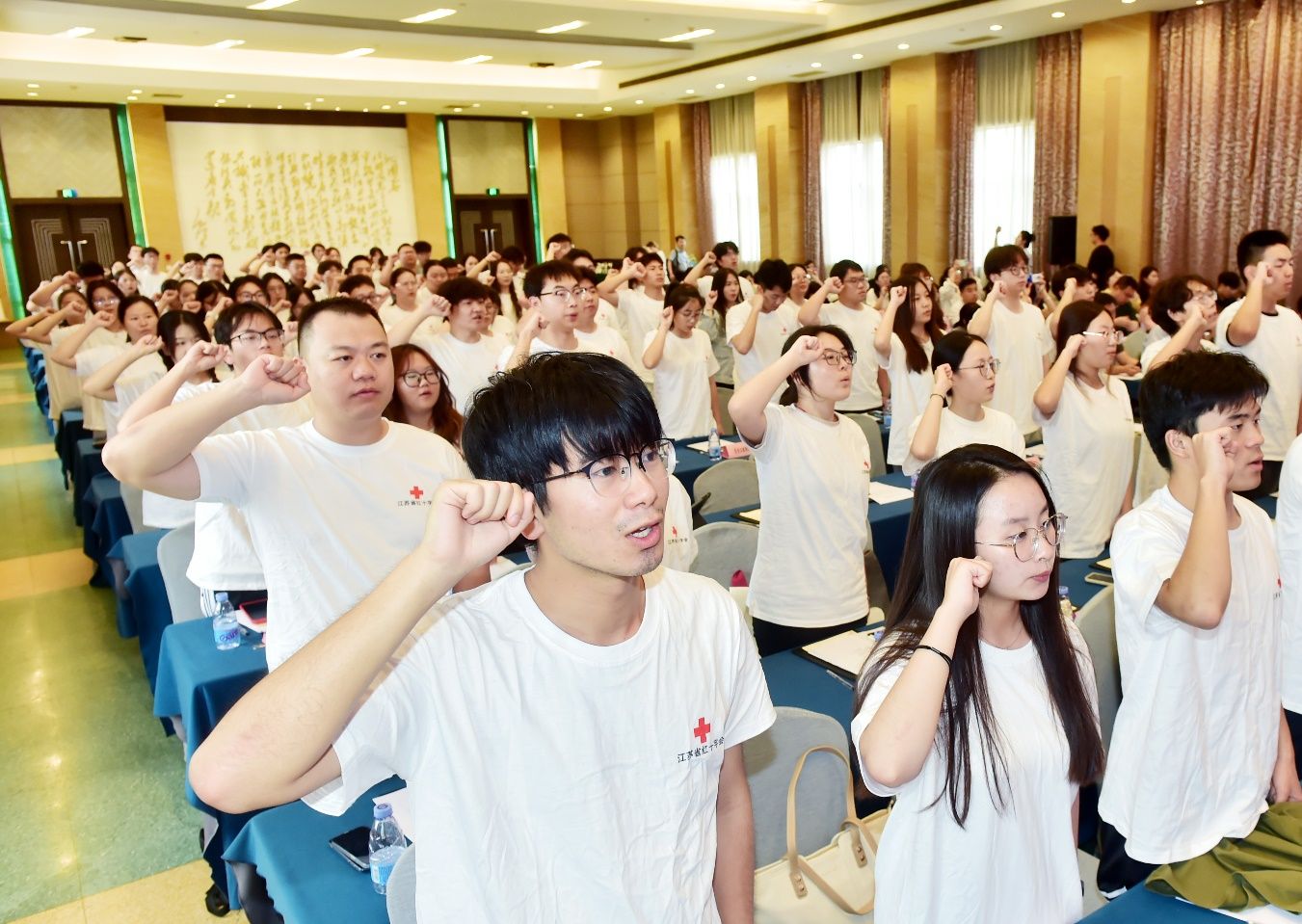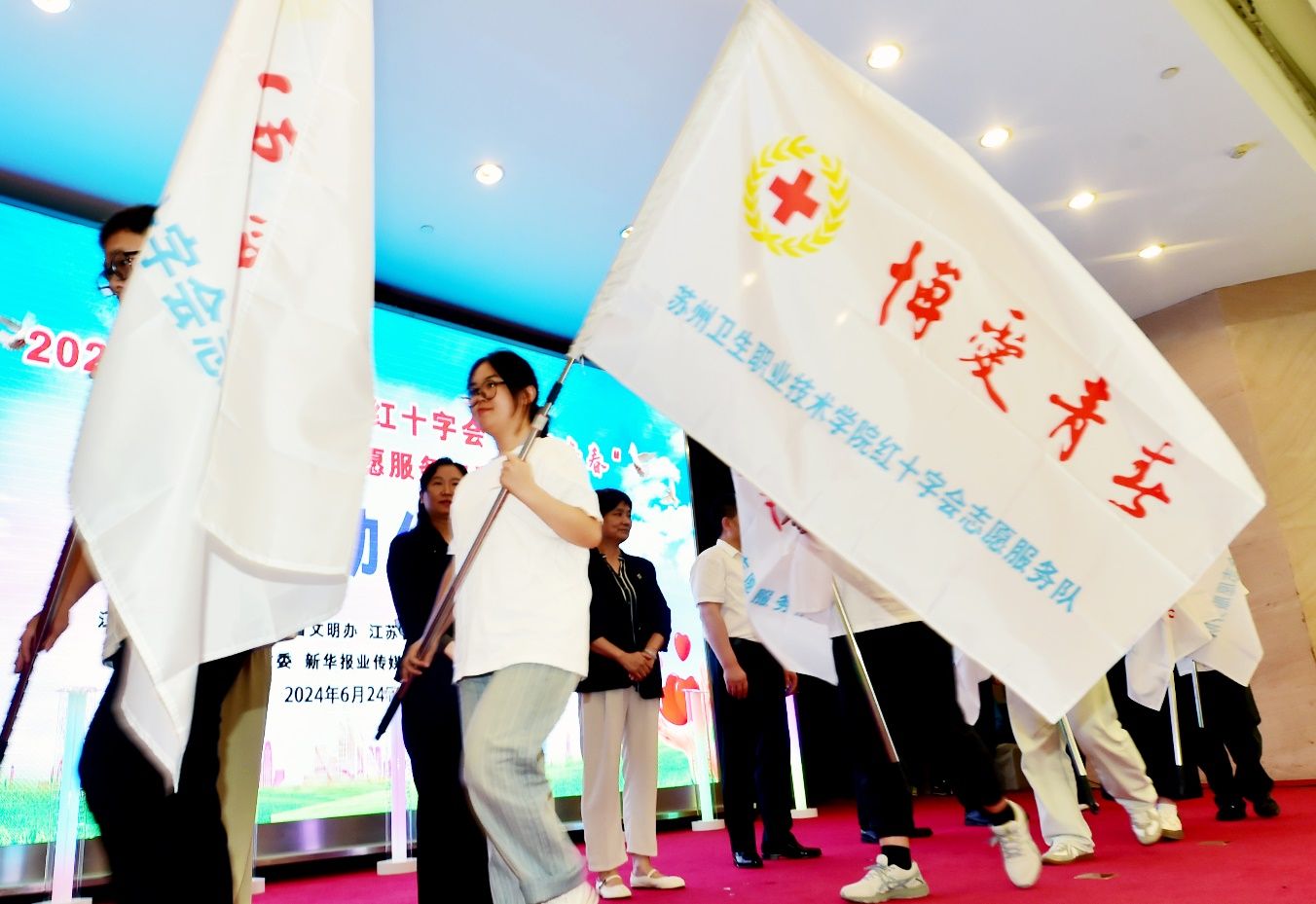 6月24日下午,2024年全省高校紅十字會“博愛青春”暑期志愿服務項目啟動儀式在南京舉行,60個高校項目負責人接過隊旗,正式拉開高校紅十字志愿者深入鄉村社區、學校醫院和廠礦企業開展人道領域志愿服務的序幕。