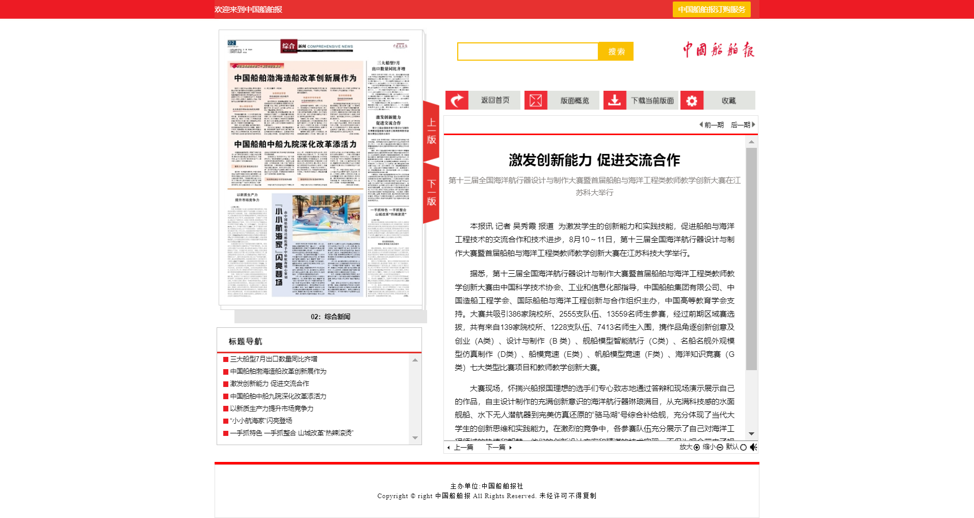 本報訊 記者 吳秀霞 報道 為激發學生的創新能力和實踐技能,促進船舶與海洋工程技術的交流合作和技術進步,8月10~11日,第十三屆全國海洋航行器設計與制作大賽暨首屆船舶與海洋工程類教師教學創新大賽在江蘇科技大學舉行。